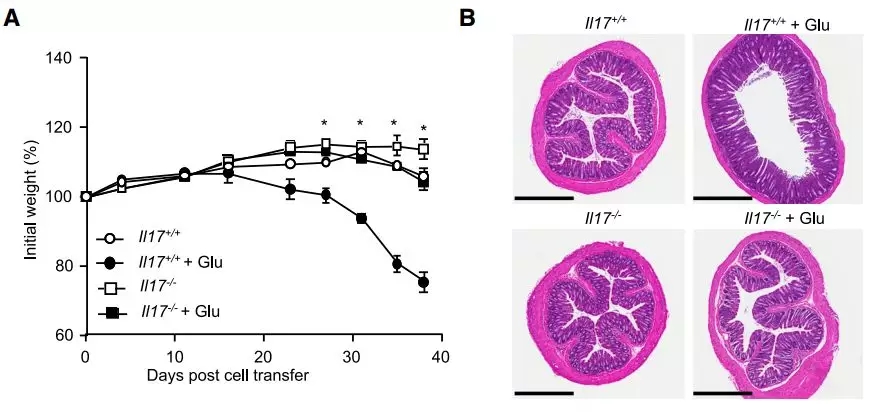 很自然的,研究者們就懷疑到了Th17的“特產(chǎn)”,白介素17。