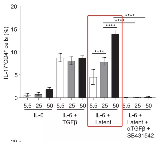 當(dāng)把培養(yǎng)基中的活化TGF-β換成未激活的TGF-β,葡萄糖的魔力終于顯現(xiàn)出來了。葡萄糖的濃度越高,Th17的分化就越多,和劑量完全成正比。