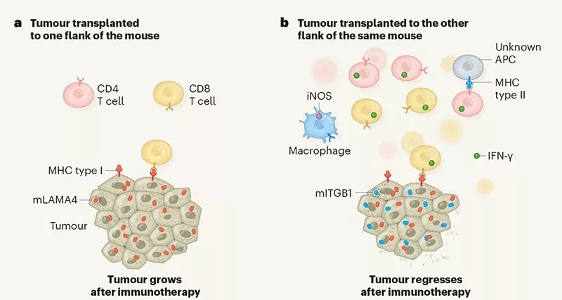 這就是本次研究的團(tuán)隊(duì)想要解開的謎題。首先,為了盡量排除已知抗原激活免疫應(yīng)答的影響,研究團(tuán)隊(duì)特地選擇了免疫原性很低,免疫檢查點(diǎn)抑制劑治療基本無效的一個(gè)惡性肉瘤細(xì)胞系,給這些癌細(xì)胞插上MHCI類和II類新抗原來展開實(shí)驗(yàn)。