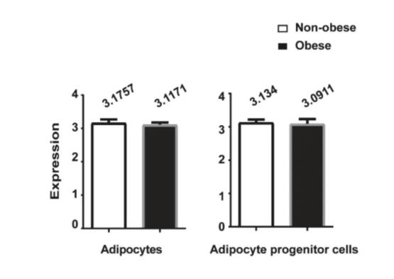 肥胖者和非肥胖者脂肪細胞中ACE2表達量近似