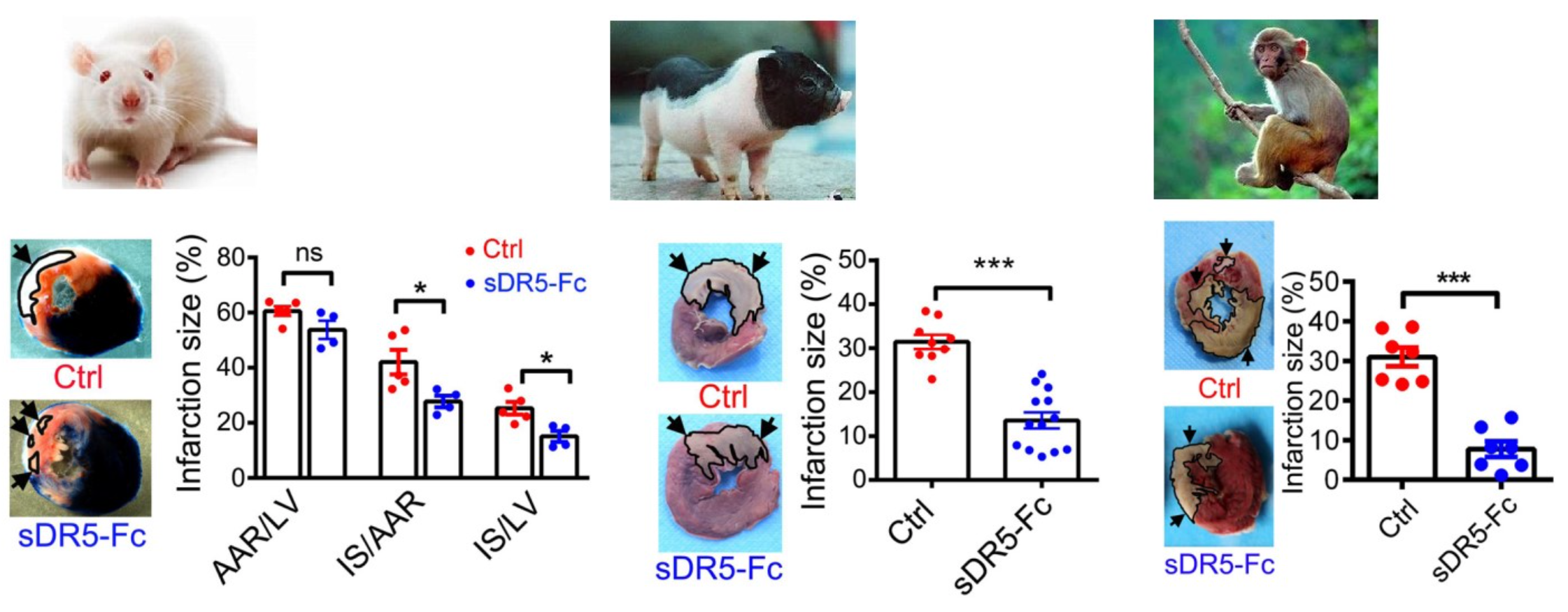 ▲ sDR5-Fc對大鼠、小型豬和恒河猴心肌的保護作用