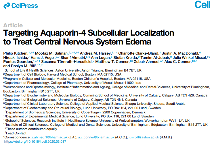導(dǎo)言:腦或脊髓腫脹(稱為中樞神經(jīng)系統(tǒng)水腫)是中樞神經(jīng)系統(tǒng)含水量增加的結(jié)果,可在創(chuàng)傷、感染、腫瘤生長或血液供應(yīng)受阻后發(fā)生,創(chuàng)傷性損傷和中風(fēng)是導(dǎo)致中樞神經(jīng)系統(tǒng)水腫的主要原因;根據(jù)世界衛(wèi)生組織的數(shù)據(jù),全球每年有6000萬人遭受創(chuàng)傷性腦損傷或脊髓損傷,1500萬人遭受中風(fēng)(500萬人死亡,另外500萬人永久殘疾)。根據(jù)5月14日發(fā)表在《細(xì)胞》雜志上的研究表明,靶向水通道蛋白-4亞細(xì)胞定位有望治療中樞神經(jīng)系統(tǒng)水腫。