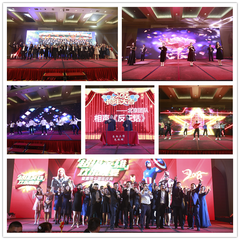 白天我們英姿颯爽,夜晚我們精心裝扮,走一趟紅毯,簽一個(gè)大名,對著直播鏡頭微笑招手,別出心裁的入場讓我們體驗(yàn)了一把明星大腕的感覺。以“超級英雄”為主題的歡樂晚宴用四個(gè)篇章逐一呈現(xiàn),四位領(lǐng)導(dǎo)喬裝四位超級英雄的開場show震撼全場,同時(shí)也演繹出真心英雄的氣概。舞蹈青春動(dòng)感、歌曲溫婉悠揚(yáng)、相聲幽默風(fēng)趣、抽獎(jiǎng)激動(dòng)人心。真是不舍得說再見的一個(gè)夜晚!