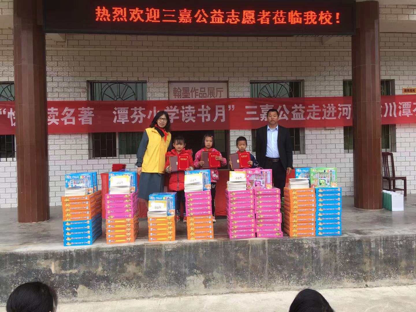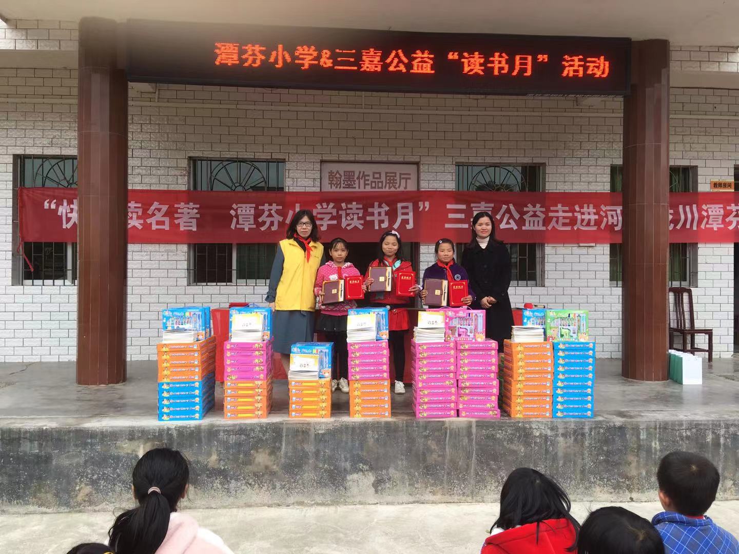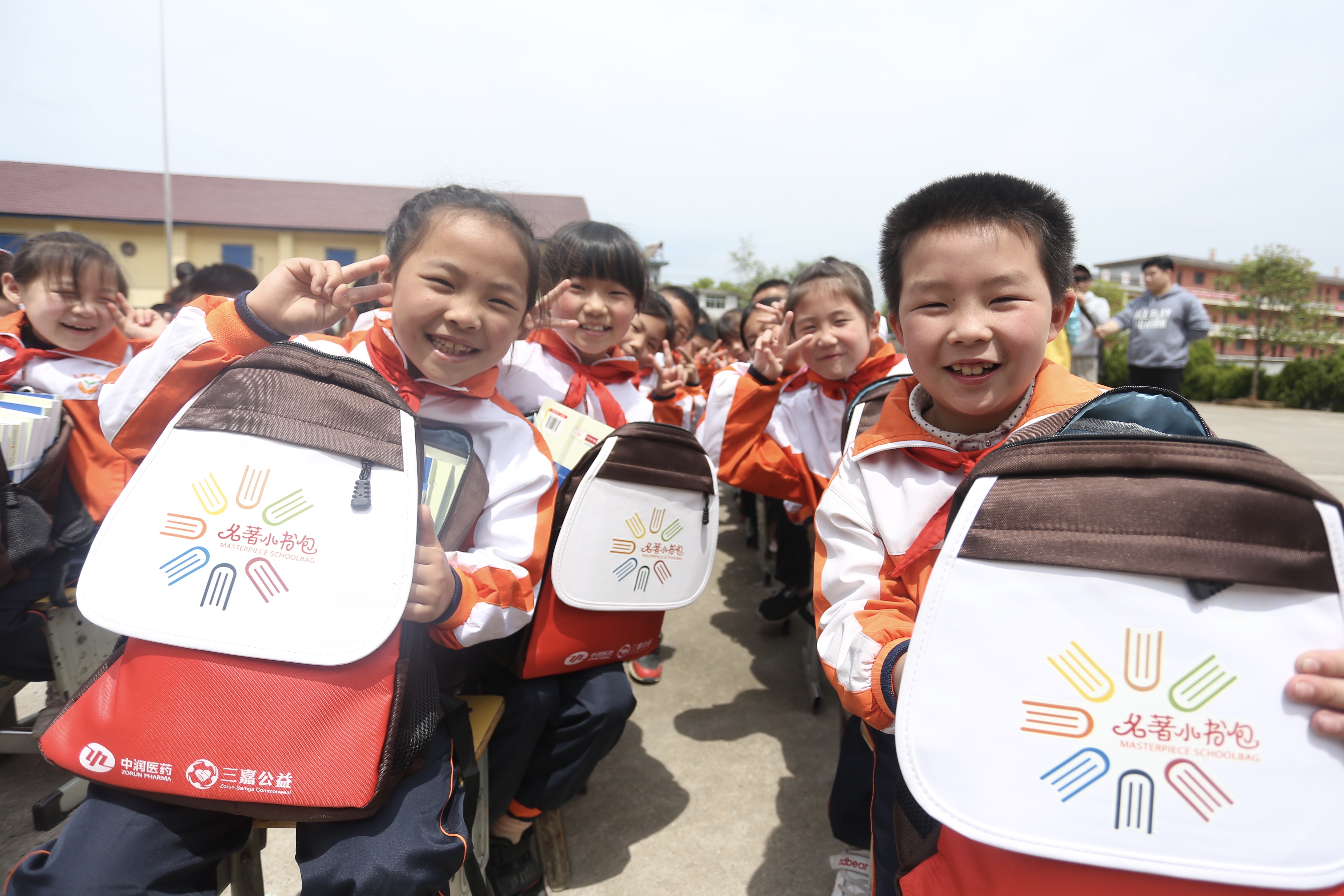 2019年,為解決鄉村孩子的閱讀危機,幫助他們養成良好的閱讀習慣,三嘉公益資助了20余所鄉村小學,為鄉村孩子們帶去了千余套“名著小書包”及相關學習物資。