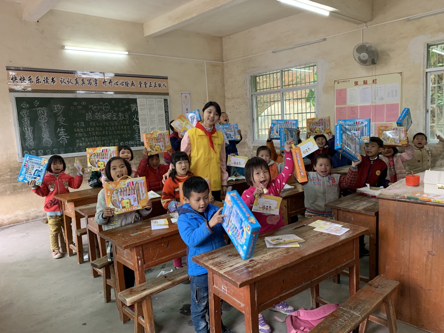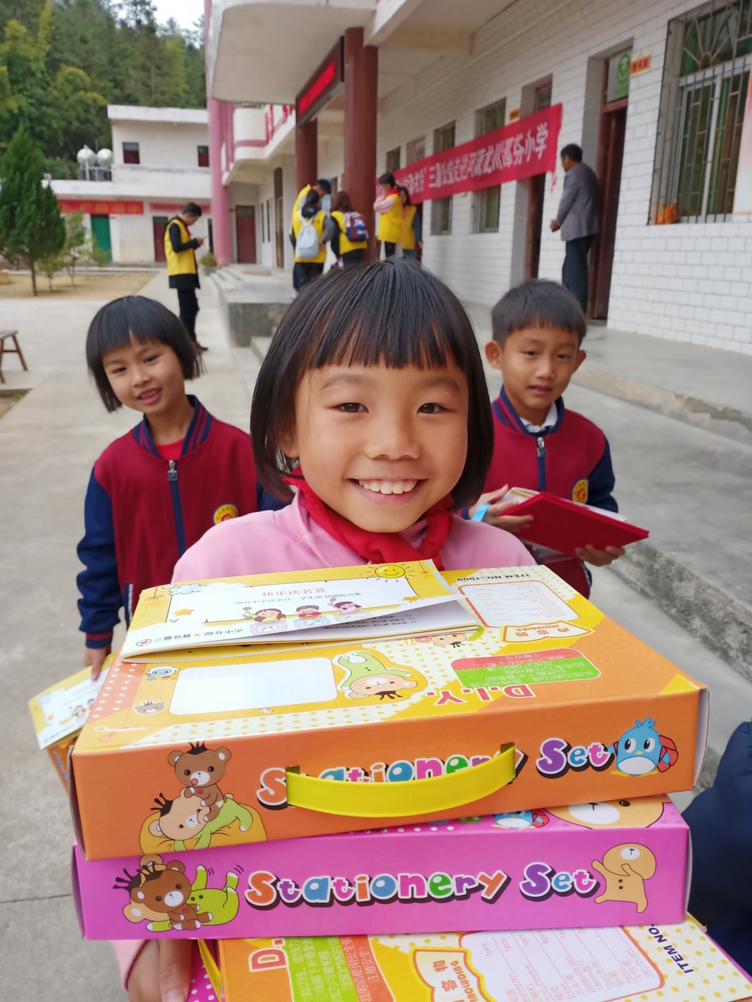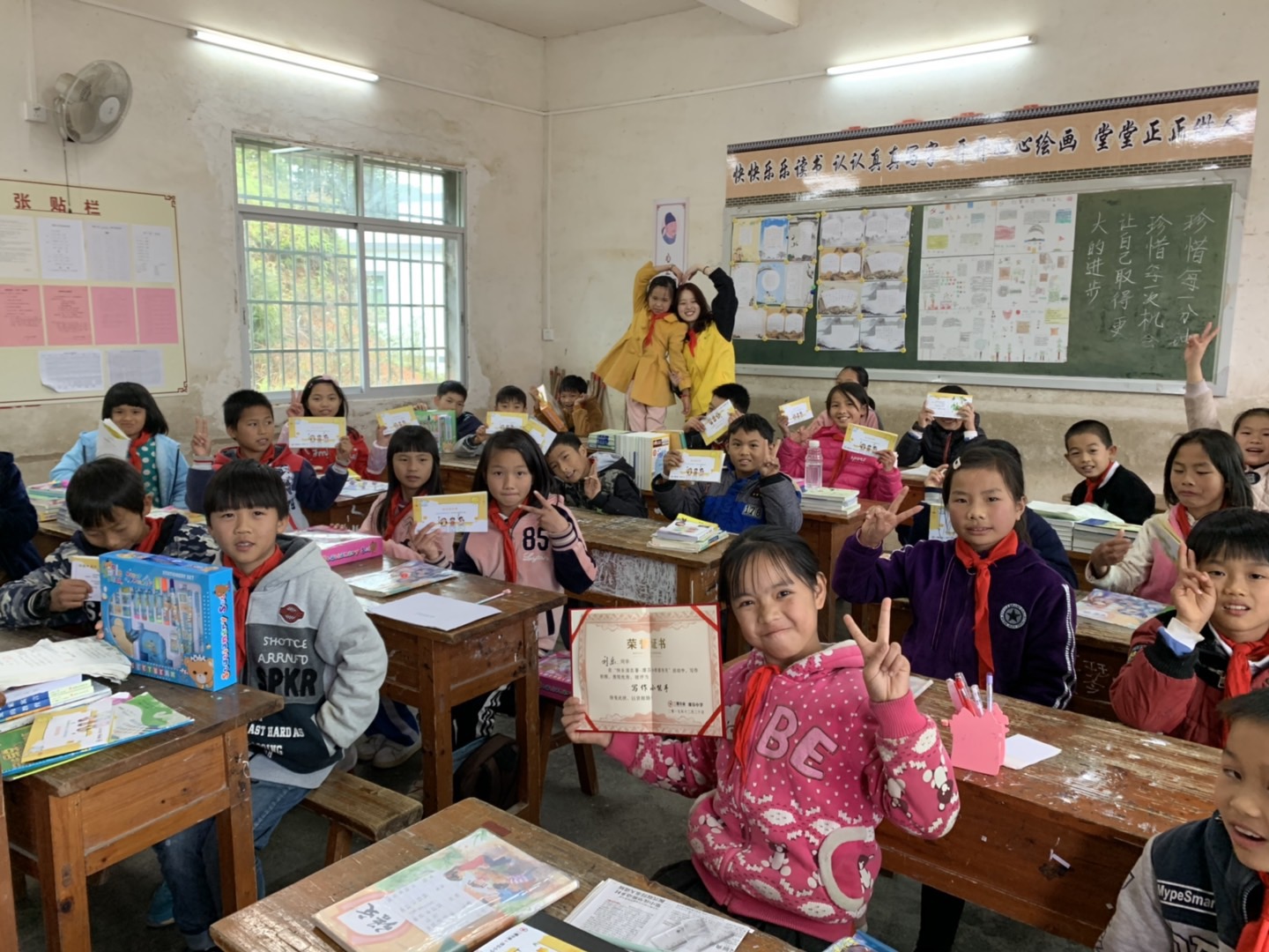 志愿者們將文具套裝分發到每一位同學的手上,隨后進入班級為孩子們上了一堂豐富有趣的讀書分享課,與孩子們互動,分享自己最喜歡的書籍和趣味故事。