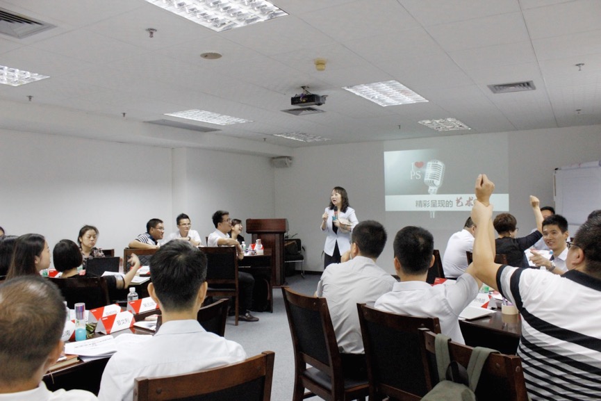 培訓(xùn)過程中首先要做到感染有力,除了克服緊張,還包括形、動、聲、情四方面的協(xié)同。總助曲相旭在開場破冰環(huán)節(jié)用自己強(qiáng)大的氣場、鎮(zhèn)定的心理、大方的談吐給大家展示了什么是感染有力,什么是形、動、聲、情匯聚。